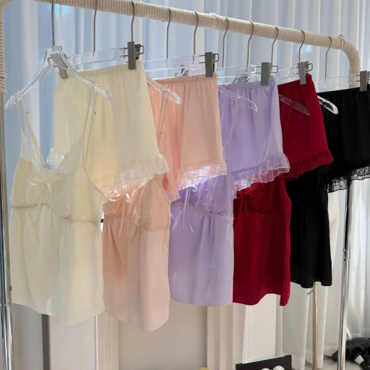 1604gc20 33. 33 1,67 0,2 BỘ NGỦ LỤA 2 DÂY VIỀN REN kèm đệm ngực ✔5 màu : kem , đen , hồng , đỏ , tím ✔Size : M-XL 🌸 giá 155k 🐬 chốt 16/4