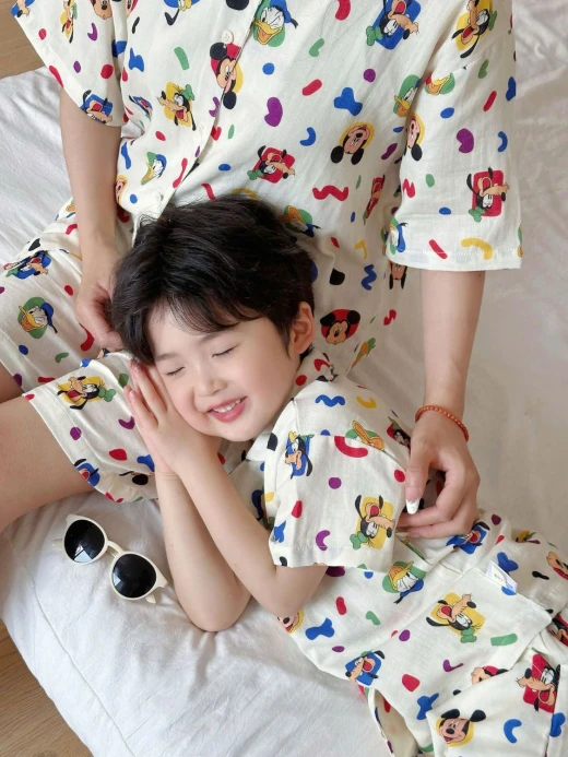 0704gc36 BỘ NGỦ PIJAMA CHO MẸ VÀ BÉ Em gom bộ ngủ cho các bé nhé ạ. Phù hợp cho cả bé trai lẫn bé gai nha Có sz cho mẹ mặc đôi với con lun nè 3 mẫu đánh số sz 90-140, L ☘️Giá: sz 90-140: 175k sz L: 218k 🚛Hàng od chốt 7/4