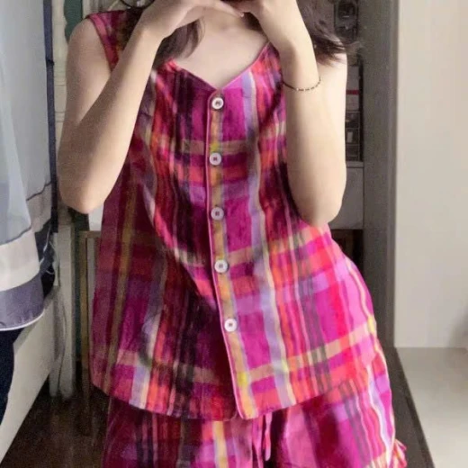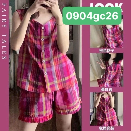 0904gc26 BỘ NGỦ SÁT NÁCH KẺ HỒNG Xinh quá , lên dáng tiểu thư lắm ạ , nhã nhặn xinh xắn , mặc hè siêu mát siêu xinh sz M-2XL 🌸 giá 94k 🐬 chốt 9/4