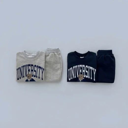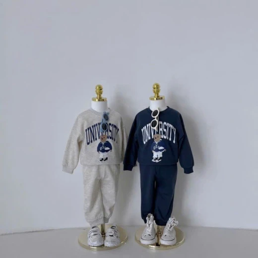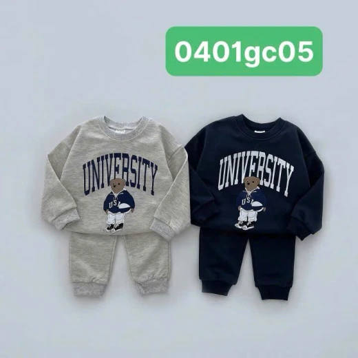 0401gc05 BỘ NỈ GẤU UNIVERSITY Thiết kế gọn gàng, dễ mặc – bé đi học, đi chơi hay ở nhà đều phù hợp. 2 màu: xám, than sz 80-130 🌸 giá 176k 🐬 chốt 0401