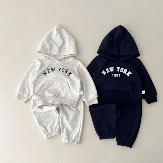 0401gc04 BỘ NỈ MŨ IN CHỮ NEW YORK Bé xinh – năng động – ấm áp cả mùa đông 2 màu: xám, than sz 80-130 🌸 giá 179k 🐬 chốt 0401