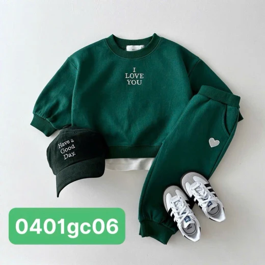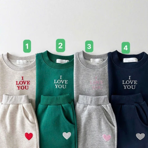 0401gc06 BỘ NỈ THÊU CHỮ I LOVE YOU CHO BÉ Mẫu mới lên kệ đẹp xuất sắc luôn các xốp ơi. Kiểu dáng thể thao khỏe khoắn, diện đi học đi chơi đều okela 4 màu đánh số sz 80-130 🌸 giá 168k 🐬 chốt 0401