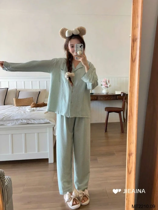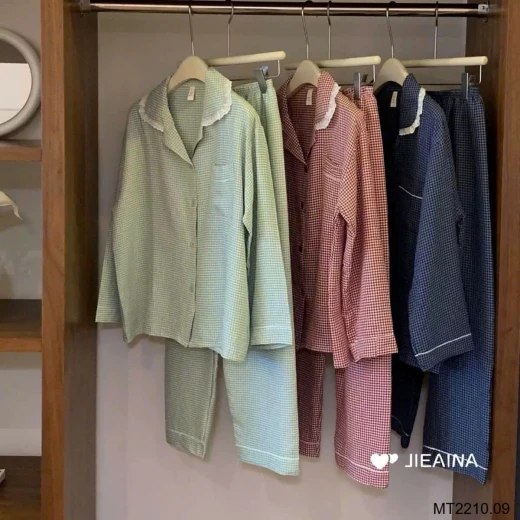 2210hc61 💖 SẮM PIJAMA NGAY THÔI CÁC MẸ ƠI! Thời tiết se lạnh, mặc là chuẩn đẹp nha 😍 ♥️♥️Bộ pijama họa tiết caro Hàn basic, dễ mặc mà vẫn cực xinh. 💲 Giá: 189K/BỘ Chuẩn hãng JIEAINA – chuyên đồ ngủ cực kỳ mềm mịn và thoải mái 🌙 🌸 Màu: Xanh mint / xanh than/ Đỏ Size: M: 40–50kg L: 50–60kg XL: 60–70kg 2XL: 70–80kg Giá: 152k Chốt 2210