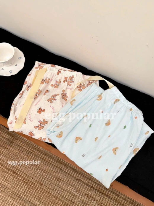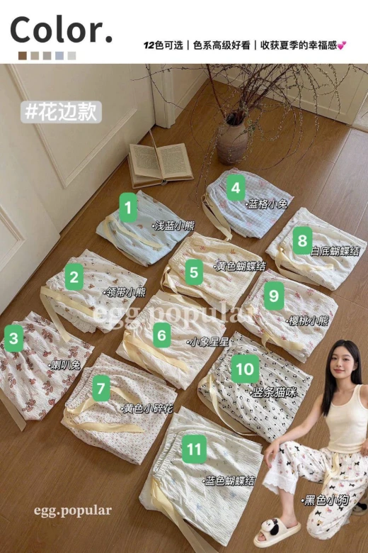2704gc48 BST QUẦN SUÔNG HỌA TIẾT EGG Quần xinh cho ce nè, có ai cùng gu với e mua chung đi ạ. Hè diện vs áo phông áo 2 dây đúng chân ái. Tone màu cũng soft xỉu. 20 mẫu đánh số freesize 40-70kg 🌸 giá 85k 🐬 chốt 2704