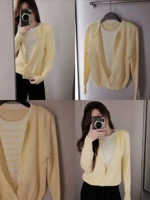 0310hc58 Dự đoán xu hướng thu đông - tone pastel lên ngôi. Kính thưa các thể loại áo len - e này #1xxk kiểu giả hai lớp xịn tnay em thề mỗi em bán giá nay - bên QC thanh lý hạ móc e ôm đc 3 màu hot nhất. ‼️ ‼️ CARDIGAN LEN GIẢ 2 MẢNH Mời ce chọn màu ạ. Áo may liền ko tách rời nha, mua 1 mà mặc đc thành 2 lun. ✅ 3 màu : Hồng - Xanh - Vàng ✅ freesz dưới 60kg ===== chốt 03/10 giá 130K/1C