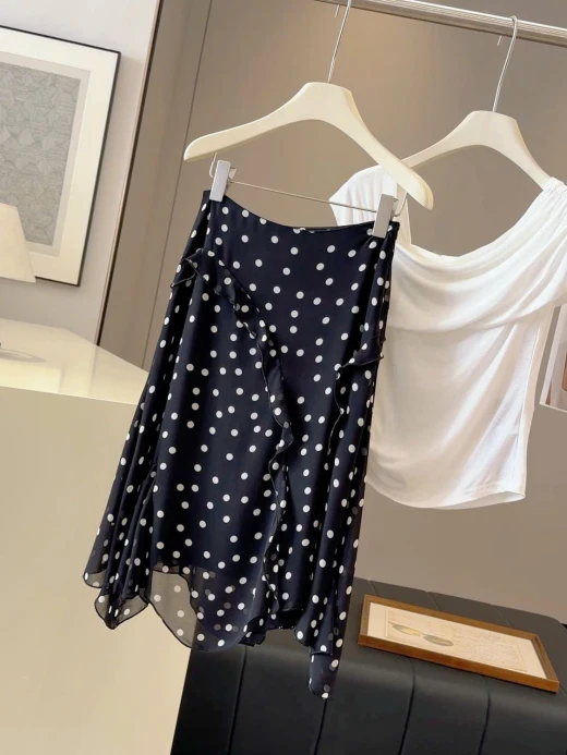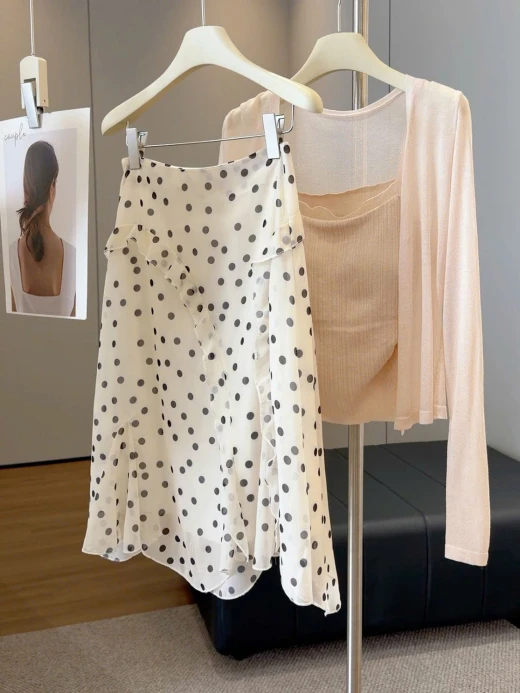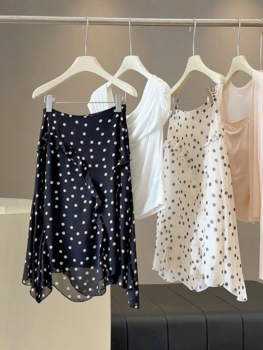 0105gc23 CHÂN VÁY CHẤM BI ANNA 2 màu: đen, be ✅sz SML S: dưới 47kg M: 47-52kg L: 53-56kg 🌸 giá 180k 🐬 chốt 1/5