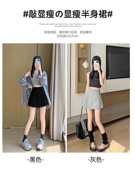 2404gc02 CHÂN VÁY COTTON CHỮ A trong có lớp lót ạ 2 màu: đen, xám ✅sz S-XL S dưới 47kg M 47-53kg L 53-62kg XL 62-70kg 🌸 giá 85k 🐬 chốt 24/4
