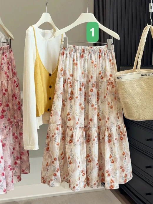 2103gc22 CHÂN VÁY HOA NỮ Chân váy midi kiểu Pháp mềm mại, nữ tính với họa tiết hoa nhiều màu sắc 2 mẫu đánh số như trên ảnh: ✅Freesize 🌸 giá 177k 🐬 chốt 21/3