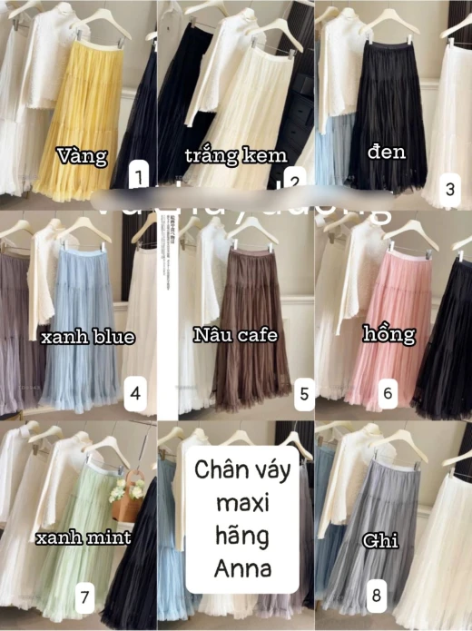 2603gc47 MANG NGAY MÙA HÈ ĐẾN CHO CÔ ẤY 🤣 Mỗi chị em phấn đấu có 1 chiếc váy này cho riêng mình nhé :)) Lên ảnh cứ gọi lên 10 chân kính Huhuuu đi biển mùa này nhất định có trắng hoặc vàng cho e nhaaa Đẹp xỉu nha Nhà Anna làm đồ đẹp điêng luôn í Mng cứ ytam mà mua thuiii ‼️ ‼️ CHÂN VÁY VOAN MAXI NHÀ ANNA Chân váy hot hit năm nayyyy lên dáng đỉnh cỡ này ạ, sắm du xuân thuiii các bác oio Seooo chỉ còn #2xxKKKK / c thuii freesize dưới 68kg mặc đẹp ạ Dài váy 94cm Anna chất bao đẹp rồi ạ Bảng màu rất phong phú cho các chị lựa:8 màu e đánh số : Xanh lá, Nâu caphe, Be trắng, Ghi, Hồng, Đen, Vàng, Xanh dương Od; 2-4w Giá: 213k Chốt 2603