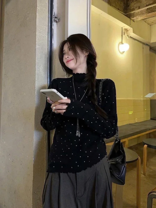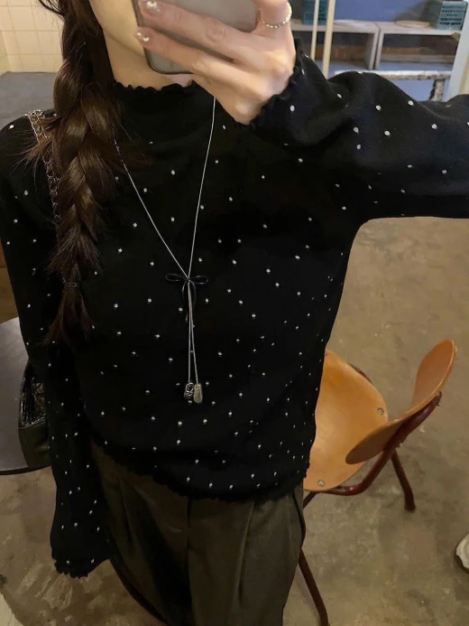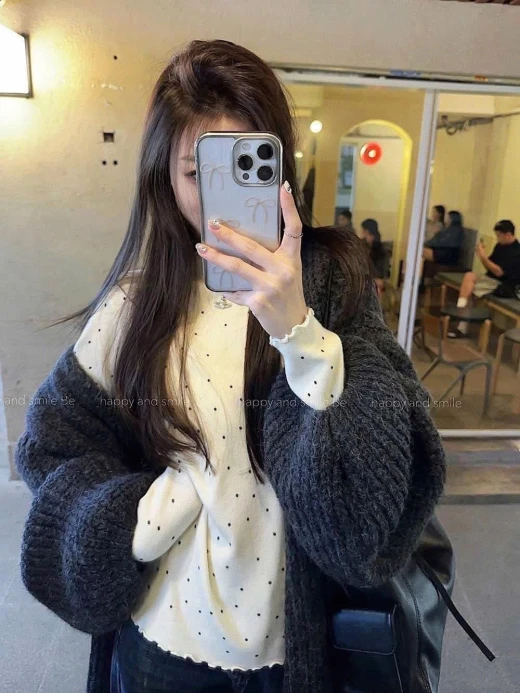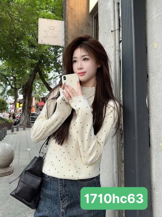1710hc63 ‼️ ‼️ Chiếc áo len chấm bi đốn tim các chị em mình đâyyy ❤️❤️ Áo trong có lót mỏng mặc phải ấm thuiii Mà phối đồ thu đông thì siêu siêu xinh ý ạ 🥰🥰 xxk/c 2 màu : be - đen freesz dưới 62kg order >3ww ====== chốt 17/10 giá 57k/1c
