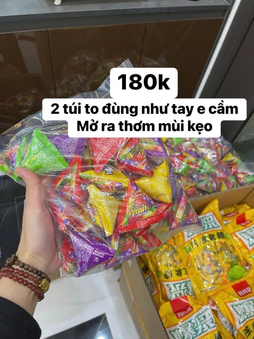 0101gc59 Tết năm ngoái cháy hàng món này, ko ngon ko lấy tiền. Từ giờ tới cuối năm nhiều party các mẹ mua sẵn để dành nè ❤️❤️Các bạn nhỏ ghé chơi tết mà thấy món này thì mừng quýnh nè các bác 😂 muaa bày tết quá rực rỡ và hợp lí luông KẸO DẺO CHIP CHIP - làm gì có bé nào mà ko mê 🤣🤣 Món nè dự bày ra hết đầu tiên 🤣 ✔ xxkk/ 500g ✔ 1xxkk/1kg (khoảng 60 gói ) Mix sẵn nhiều vị, chia nhiều túi nhỏ siêu tiện và sạch sẽ 🎉 ❌COMBO 1KG 𝗞𝗘̣𝗢 𝗗𝗘̉𝗢 𝗖𝗛𝗜𝗣 𝗖𝗛𝗜𝗣 CỦ ẤU 𝗩𝗠𝗜𝗧𝗢 🍎🍇🍊🍓𝗦𝗔𝗟𝗘 Kẹo vị hoa quả mix đủ loại: táo, nho, cam, dâu ,… mlem mlem ngon lắm ạ. Đặc biệt: ⚡️ Kẹo không chứa chất béo ⚡️ Không thêm các loại phẩm màu nhân tạo ⚡️ Kẹo được chiết xuất từ các vị hoa quả tự nhiên rất an toàn cho trẻ nhỏ Kẹo đóng thành cái túi nhỏ nên bày biện dễ lắm mà sạch sẽ, vệ sinh, 1 kg được nhiều các chị ạ. Lấy 2-3kg cho con ăn với bày tết thì có mà tha hồ 🔺 Ord trả trước tết âm =========== chốt 01/01 giá 115k/1kg