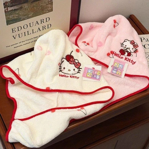 1404gc47 COMBO 2 KHĂN TRÙM TÓC HELLO KITTY họa tiết kitty mẹ thích con thích , chất vải lông san hô mềm mại, không bị rụng lông sau khi giặt. họa tiết hình thêu tinh tế. Only #xxxk/set 2c Trắng + Hồng Kích thước: 25*65cm ☘️Giá: 64k/2c mix 🐬Chốt 14/4