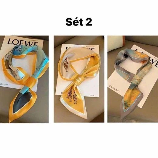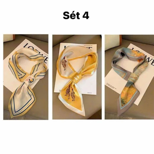 1004gc48 💯💯 COMBO 3 KHĂN LỤA #79k/set , từ 2 set #69k/set 3c Mua 1 combo 3 khăn có thể thay đổi hàng ngày hoặc trang trí túi sách rồi thay đổi với trang phục hàng ngày đi làm! toàn mẫu mới tinh mix cùng vest, sơmi, áo len đẹp và thanh lịch lắm lun ✔️4 set đánh số ☘️Giá: 40k/set 🐬Chốt 10/4