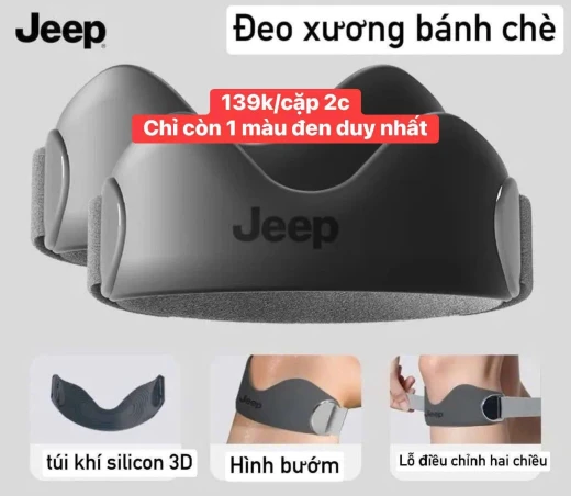 2010hc56 Hôm rồi đang đánh pick thấy đầu gối có hiện tượng mỏi mỏi thì chồng e đưa cho cái này bảo đeo vào đi- còn bảo vệ lâu dài Đai này đeo vào đầu gối được giữ ổn định, bước nhẹ mà vẫn chắc, chạy – nhảy – leo cầu thang thoải mái, không bị trượt, không bí. Đai Jeep chính hãng – sinh ra cho mấy hoạt động như pick, chạy bộ, nhảy dây, đạp xe, leo núi… ✔️Đệm silicon chống trượt, thoáng khí, giảm áp và bảo vệ đầu gối – đặc biệt là phần sụn chêm. ✔️Silicon kháng khuẩn 99%, siêu nhẹ chỉ 32g – đeo mà như không đeo. ✔️Thiết kế cong 75° ôm khớp gối cực chuẩn, không bị dịch chuyển dù vận động mạnh. 2 màu: đen, xám Hàng về sau 15-20 ngày ----------- giá: 95k / 1 cặp chốt 2010