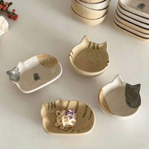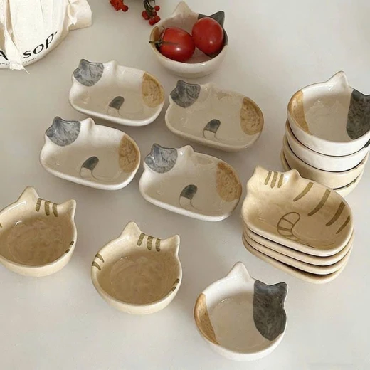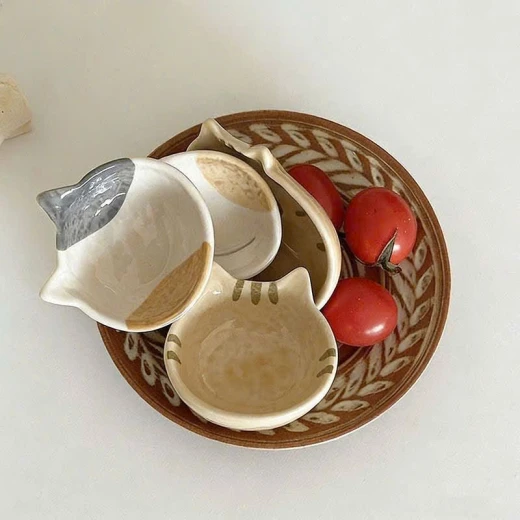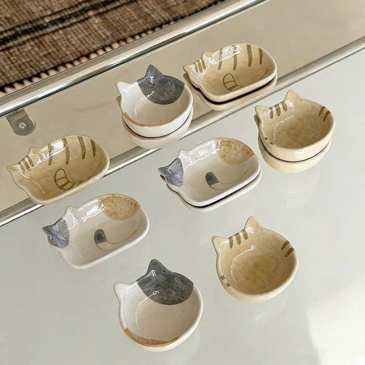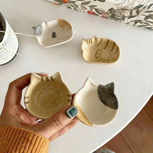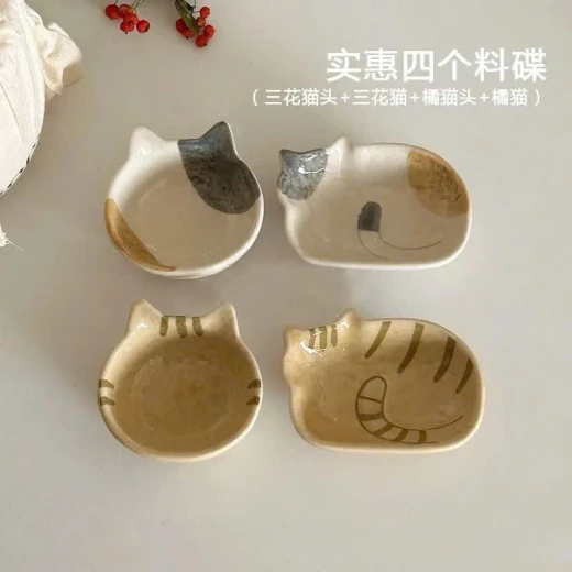 2004gc26 Đĩa chấm bằng gốm sứ hình mèo Nhật Bản. - sét 4c mix như ảnh(2 đầu mèo+ 2 thân mèo) giá: 140k/1s 🌸 giá 100k 🐬 chốt 20/4