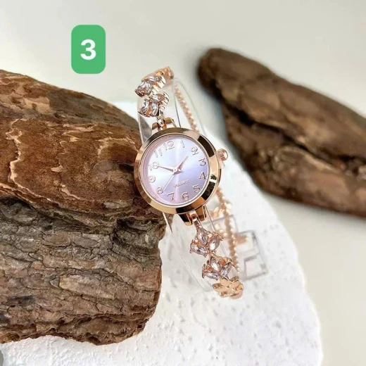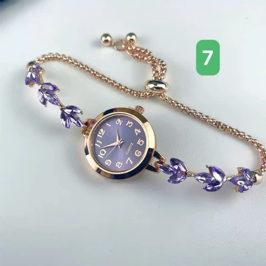 1204gc45 ĐỒNG HỒ LẮC TAY ĐÍNH ĐÁ TÍM 🦋Phần dây đeo được cách điệu với những viên đá hình lá màu thủy chung, bắt sáng cực tốt. Dây dạng rút linh hoạt, dễ dàng điều chỉnh vừa vặn với mọi kích thước cổ tay. ✅ 7 màu đánh số 🌸 giá 58k 🐬 chốt 12/4