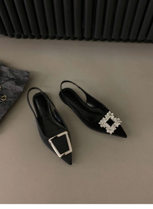 GIÀY BỆT MŨI NHỌN HỞ GÓT TONE ĐEN