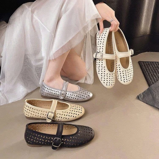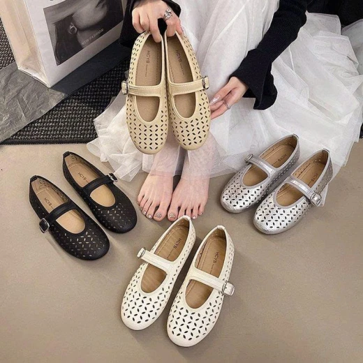0903gc42 ❌ ❌ GIÀY BÚP BÊ KHOÉT LỖ MẪU MỚI 2026 #xxxk đôi 4 màu : Đen - Mơ- Bạc- Trắng Sz: 35-40 Giá: 148k/đôi Chốt 0903