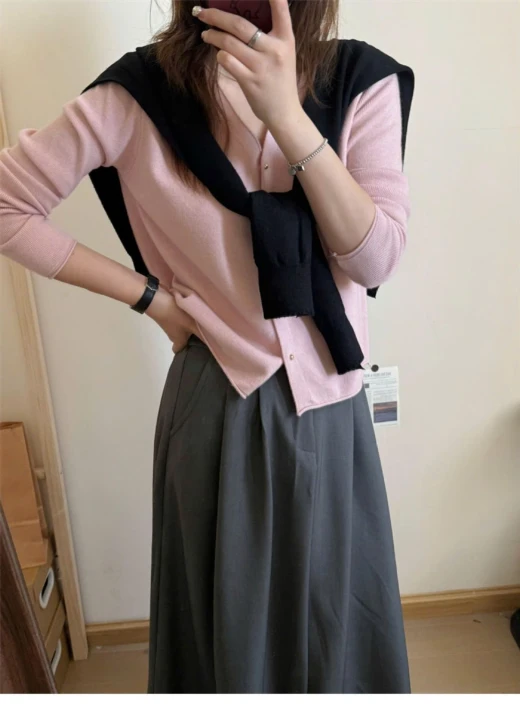 2010hc43 KHOÁC LEN MỎNG CỔ TIM Size dưới 60kg Màu : đen, hồng, xanh, trắng be 🌸 giá 148k 🐬 chốt 20/10
