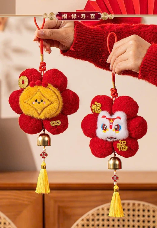 0912hc63 MÓC TREO TẾT CÓ CHUÔNG MAY MẮN xinh xắn – đỏ rực – rung nhẹ là nghe tiếng chuông cầu may chuông kêu leng keng – gọi lộc, gọi may lông mềm, màu đẹp, chi tiết đính vàng nổi bật tết tới rồi, treo một chiếc gọi lộc, treo hai chiếc gọi tài! kích thước 12×31cm – treo đâu cũng nổi bật ✔8 mẫu đánh số 🌸 giá 42k 🐬 chốt 9/12