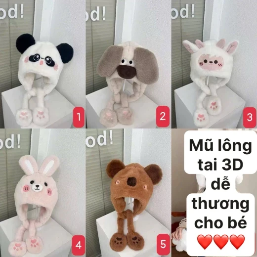 2210hc69 Mũ về siêu đẹp e gom chuyến nữa kịp giờ salee nhé. Năm nay siêu lạnh Mùa đông đi xe máy gió lùa lạnh tai các con lắm nên e mở gom mũ lông kid cho các con nha ‼️ ‼️ MŨ ANIMAL BÉ Sale rẻ lắm #xxk/1c ♥️♥️♥️ Mũ này che tai che cổ làm thành khăn đỉnh luônnn Mùa đông các con đi học thì chỉ cần mũ này đi đường cực tiện luôn Bây h thì thấy hơi nóng bức để mua nhưng e đảm bảo khi gió lạnh về mẹ naog cũng cuống quýt tìm. Cả trăm nghìn cũng mua ấy chứ ✔freeSize cho bé : 2-10 tủi 5 màu e đánh số Od china 2-4w ========= chốt 22/10 giá 45k/1c