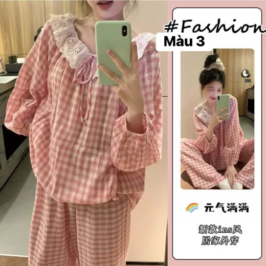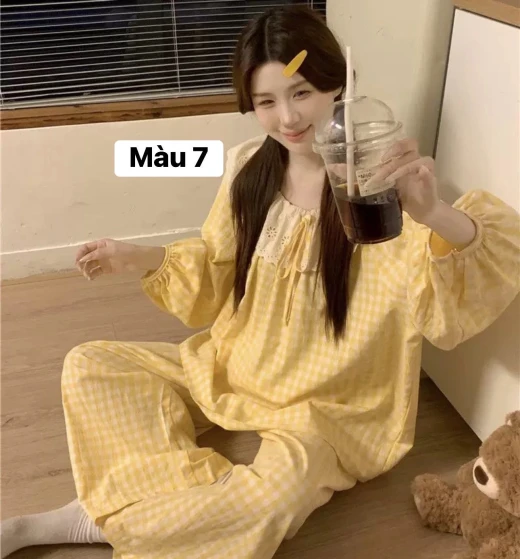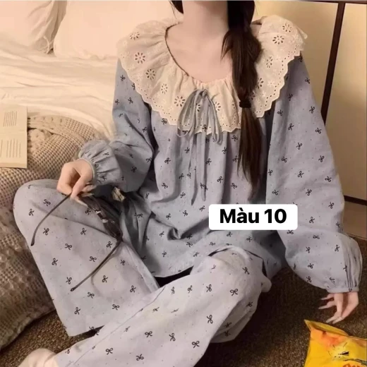 0210hc64 Đổi gu bèo nơ chấm bi dịu keo quá ạ Se lạnh rùi ce tranh thủ săn sale pijama thu đông đi ạ. ‼️ ‼️ Pijama thô đũi mềm bánh bèo mặc ở nhà hay đi cafe đều iu luôn #1xxK/SET _ Từ 2 set #1xxK Không nhầm đâu ạ, form rộng – cổ bèo siêu cưng – vải cotton mềm mịn 🥰 🌸 Có tận 2 kiểu siêu hot nha: ✨ Caro vintage năng động ✨ Hoa nhí baby ngọt ngào Màu em đánh số trên ảnhh nha cácc tìnhh iuu🌈🌈🌈 ☑️10 màu đánh số như ảnh ( ce cmt màu + size) M < 45kg L < 55kg XL < 62kg XXL < 72kg giá 98K/1B chốt 0210