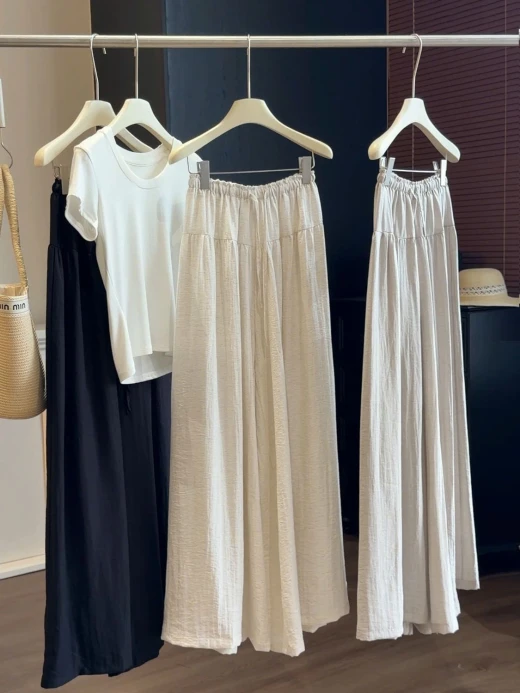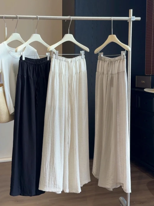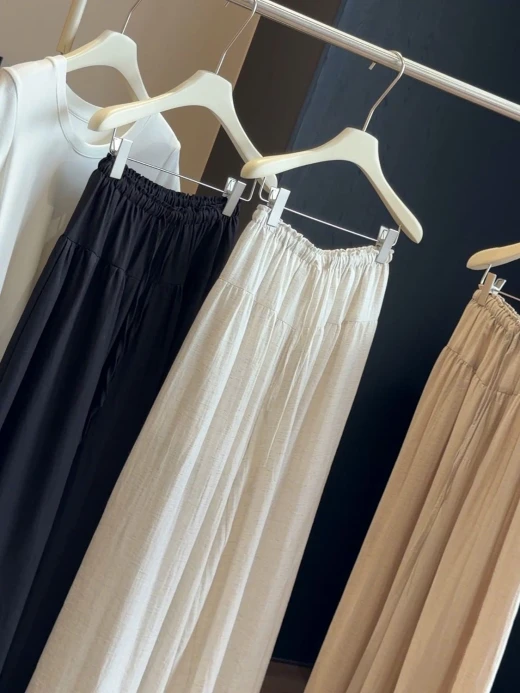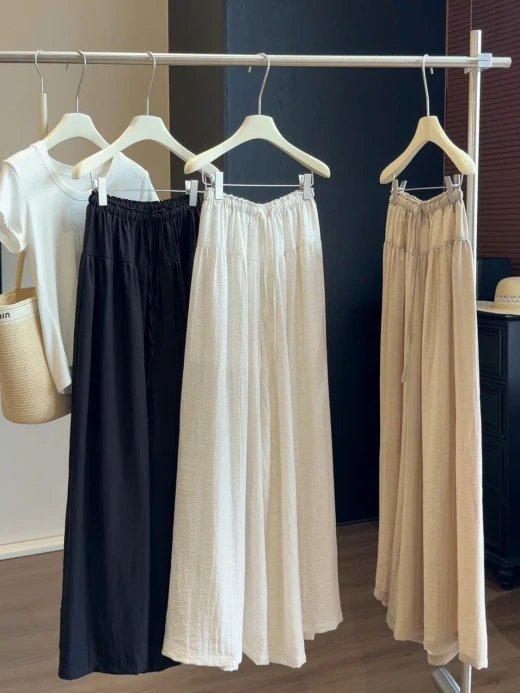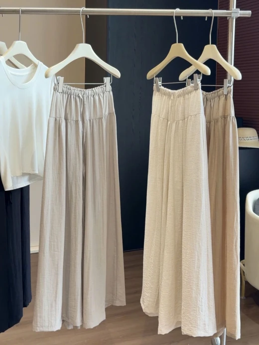 0404gc26 QUẦN CHỐNG NẮNG ỐNG RỘNG CẠP CHUN ANNA 🌤️ Nắng nóng mà vẫn muốn mặc dài cho kín đáo Đây rồi – quần chống nắng ống rộng siêu mát siêu thoải mái Ai đang tìm quần dài mùa hè thì chốt em này là chuẩn! 4 màu: xám nhạt, đen, trắng, kaki sz S-XL 🌸 giá 255k 🐬 chốt 4/4