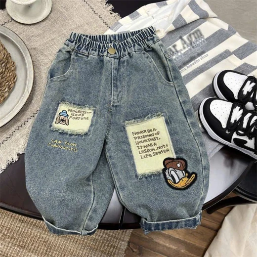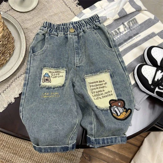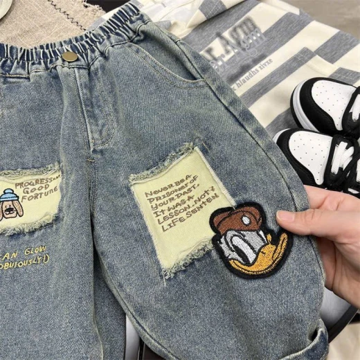 2502gc33 QUẦN JEANS BAGGY THÊU VỊT DONAL Bé mặc đi chơi – đi học đều chuẩn xịn mẹ ơi! ✔Size : 80-130 🌸 giá 179k 🐬 chốt 25/2