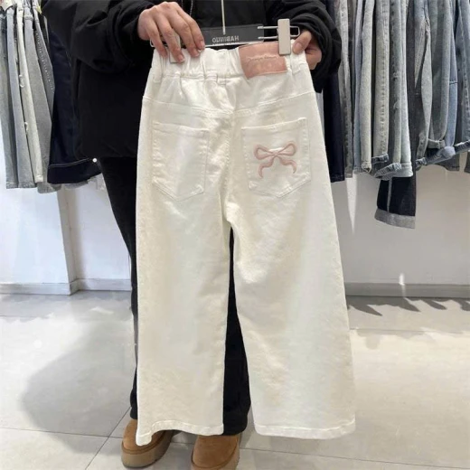 2510hc55 QUẦN JEANS NƠ BÉ GÁI Form ống suông vừa tôn dáng vừa thoải mái. Màu basic, dễ phối với mọi kiểu áo – từ đi học đến đi chơi đều xinh. Chất liệu mềm, bền, cho bé thoải mái vận động cả ✅2 màu : xanh , trắng ✅Kích thước 120-170 Bảng sz tham khảo 120: 17-22kg 130: 22-25kg 140: 25-30kg 150: 30-37kg 160: 37-45kg 170: 45-50kg 🌸 giá 150k 🐬 chốt 25/10