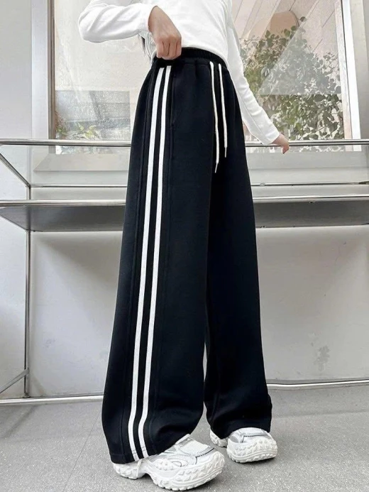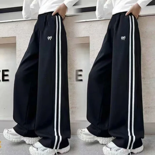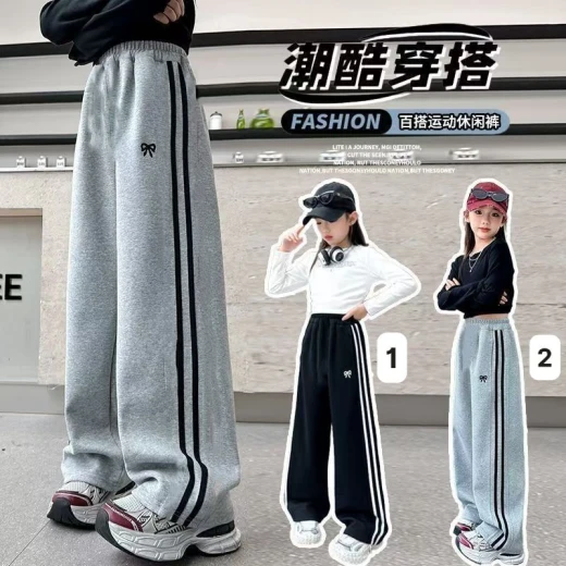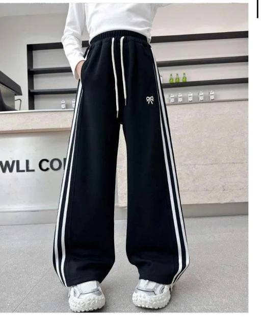 1811hc42 ‼️ ‼️ QUẦN NỈ BÉ GÁI ỐNG RỘNG PHỐI SỌC Thiết kế ống rộng – siêu thoải mái – chất vải xịn mịn, bé mặc đi học, đi chơi hay tập thể thao đều cực phong cách ✔️2 màu : đen - xám ✔️Sz 120-170 Bảng sz tham khảo 120: 17-21kg 130: 21-25kg 140: 25-29kg 150: 30-35kg 160: 36-42kg 170: 43-50kg giá 105k/1c chốt 1811
