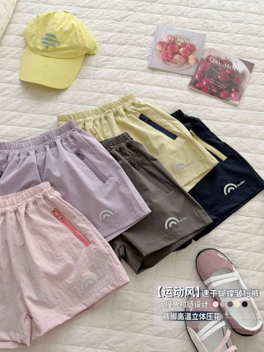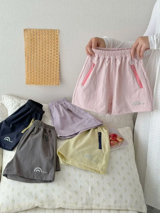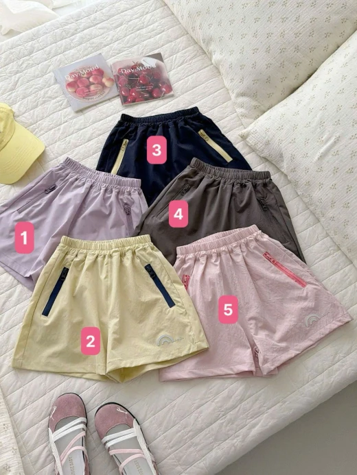 0205gc34 QUẦN SHORT GIÓ PHỐI MÀU KHÓA ✔5 màu đánh số ✔Size : 90-160 🌸 giá 114k 🐬 chốt 2/5