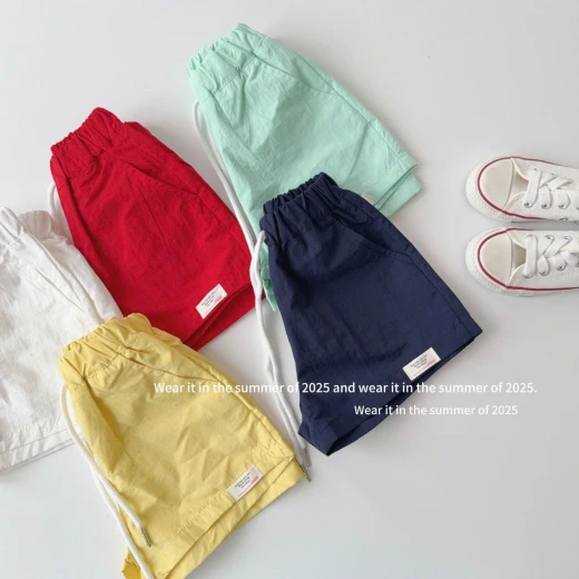 1203gc01 QUẦN SHORT GIÓ T&QKIDS ✔5 màu : trắng , đỏ , vàng , xanh than , xanh mint ✔Size : 90-150 🌸 giá 105k 🐬 chốt 12/3