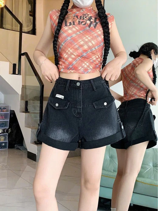 3004gc39 ❌❌ QUẦN SHORT JEANS CẠP CAO XẮN GẤU Phần gấu quần được xắn sẵn chắc chắn, tạo độ phồng nhẹ giúp đùi trông thon gọn hơn và mang lại vẻ ngoài bụi bặm, cá tính. ✅ 2 màu xanh, đen ✅ Bảng sz Xs-4Xl trên hình * cân nặng/ 2 ============== 👉👉 #195k/ cái 🌸 giá 131k 🐬 chốt 30/4