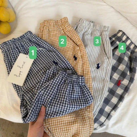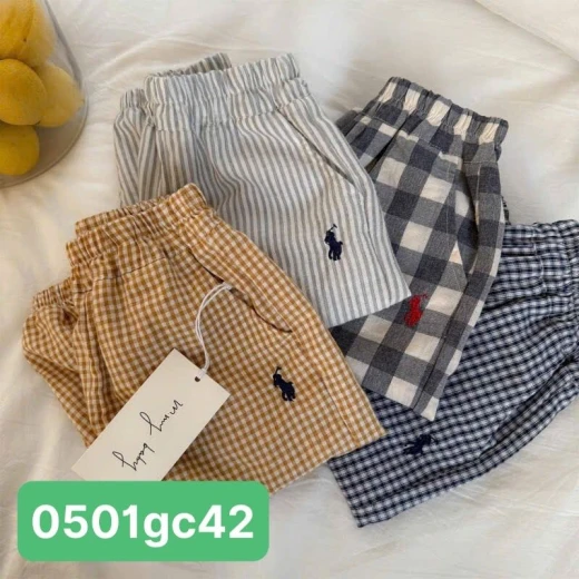 0501gc42 QUẦN THUN BO GẤU KẺ CARO THÊU NGỰA Quần thun dáng rộng, bo gấu thoải mái cho bé vận động cả ngày. Chất vải mềm nhẹ, thoáng, mặc mát không bí da 4 mẫu đánh số ✅Size 90-140 90: 11-13kg 100: 13-15kg 110: 15-17kg 120: 17-20kg 130: 20-25kg 140: 25-30kg 🌸 giá 78k 🐬 chốt 0501