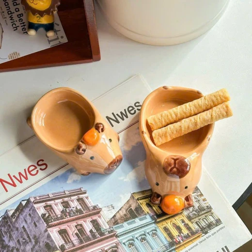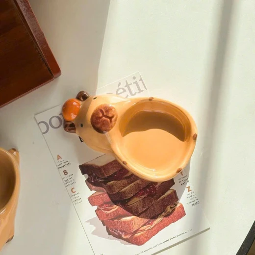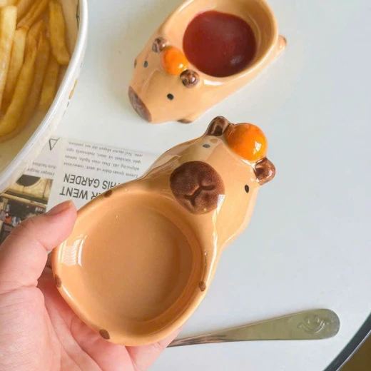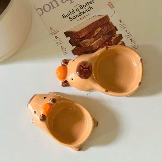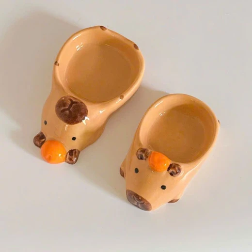 Sét 2 bát chấm gốm sứ hình capybara dành cho gia đình.