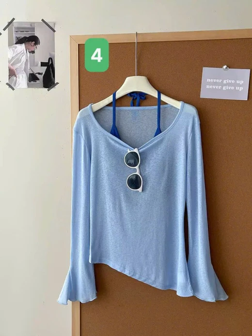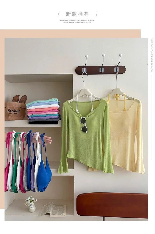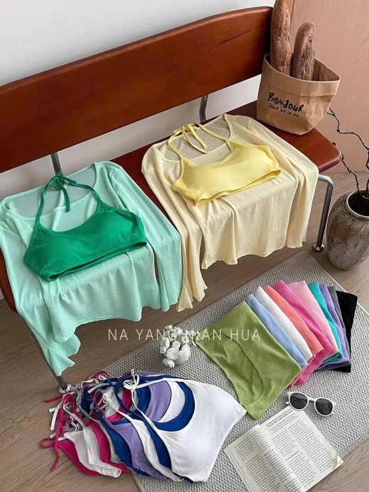 1503gc41 SET 2 MÓN ÁO NỮ 🍑+1c set chào hè đúng nghĩa 😊😍😍 Set này mà chị em đi biển thì 10 đỉmm không cứ nhưng nhaaa Áo ngoài + hai dây kèm mút bên trong 🥰 🍓các màu đánh số ✅Free size dưới 65kg giá: #169k/set 🌸 giá 130k/set 🐬 chốt 15/3