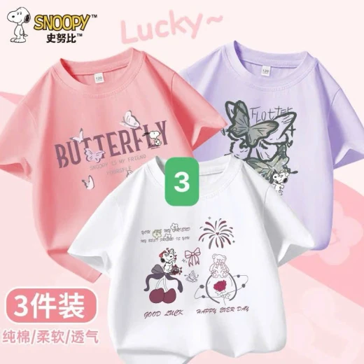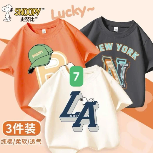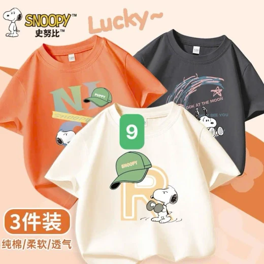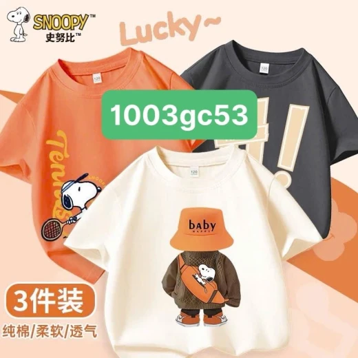 1003gc53 ☸️SET 3 ÁO PHÔNG SNOOPY Áo phông cotton Snoopy Tính ra mặc áo hãng mà chỉ hơn 80k/c thui rẻ quá trời lun, năm ngoái ai mua rùi thì biết mặc thích lắm , 100% cotton , nhà E mặc hết 1 mùa r vẫn còn đẹp. Form lỡ cỡ ntn còn khó mmua nữa cơ nói gì là rẻ. Các bà cứ làm đôi set cho con nhé Bảng size tham khảo: 110: 13-17kg 120: 18-24kg 130: 25-29kg 140: 29-34kg 150: 34-39kg 160: 39-45kg 🌸 giá 184k/combo 3 cái 🐬 chốt 10/3