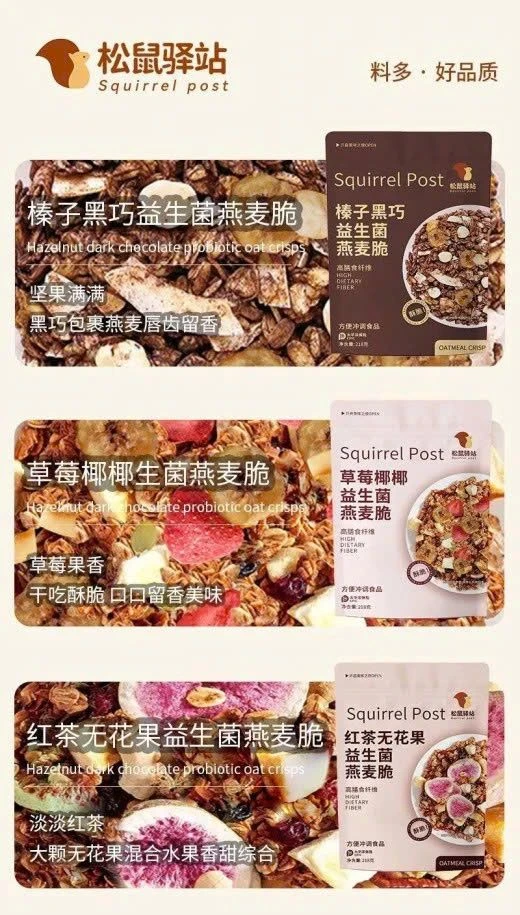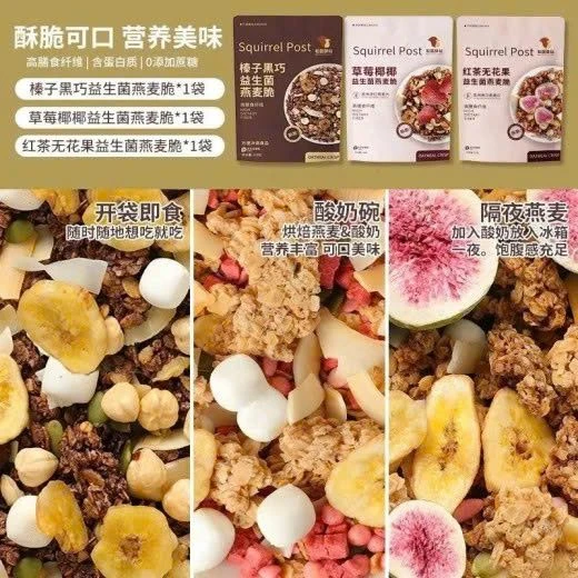 Sét 3 túi ngũ cốc yến mạch sấy giòn 218g*3 gói,mix 3 vị ( dâu dừa,socola,trà đen và quả sung).