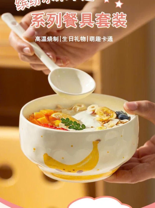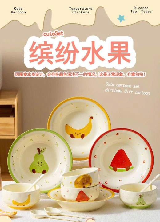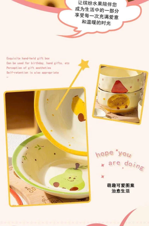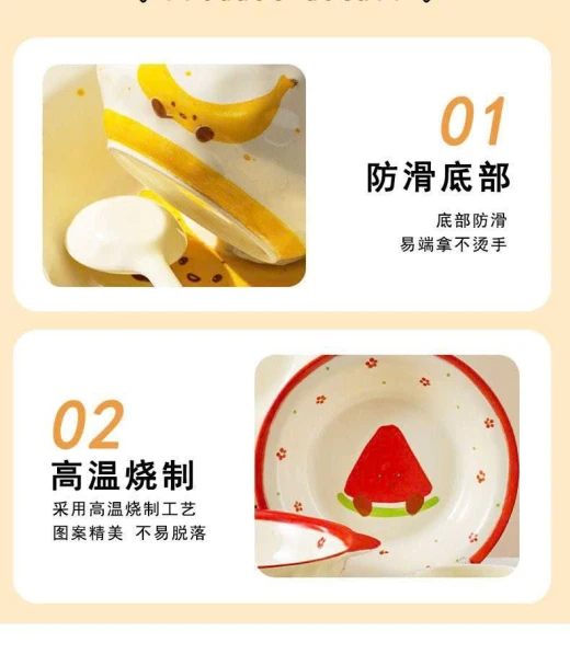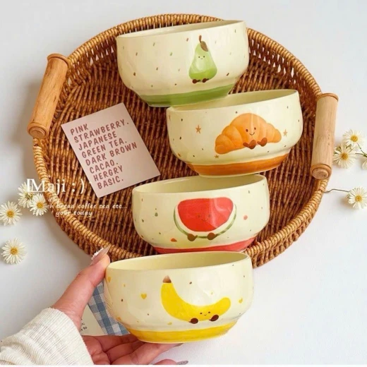 Bát đĩa sứ decor dễ thương họa tiết trái cây ngộ nghĩnh cho bé và gia đình