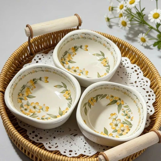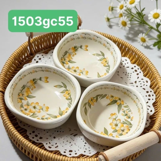 1503gc55 Sét 4 đĩa đựng gia vị bằng gốm sứ cao cấp dùng trong gia đình,hoạ tiết hoa vàng,tinh tế. giá: 99k/1s 🌸 giá 70k/set 4c 🐬 chốt 15/03