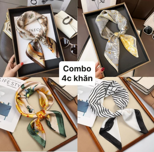2610hc62 Saleee sập nấc còn #1xxkk/combo 4 khăn luôn ạ ‼️ ‼️ SET 4 KHĂN LỤA SANG CHẢNH KT 70x70 Đẹp 4 mùa với e khăn này nhé, cân mọi outfit từ váy, sơ mi, áo phông....cứ đeo lên là đẹp👌 Quá đẹp ạ ===== chốt 26/10 giá 75k/ combo 4c