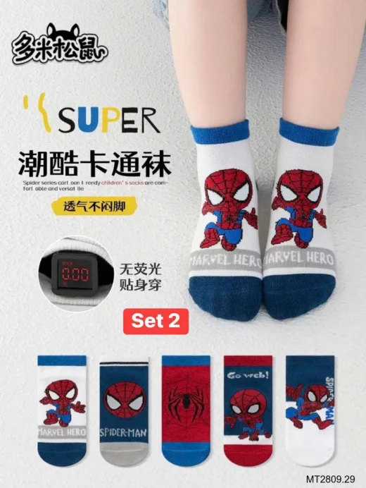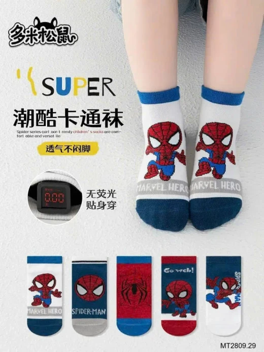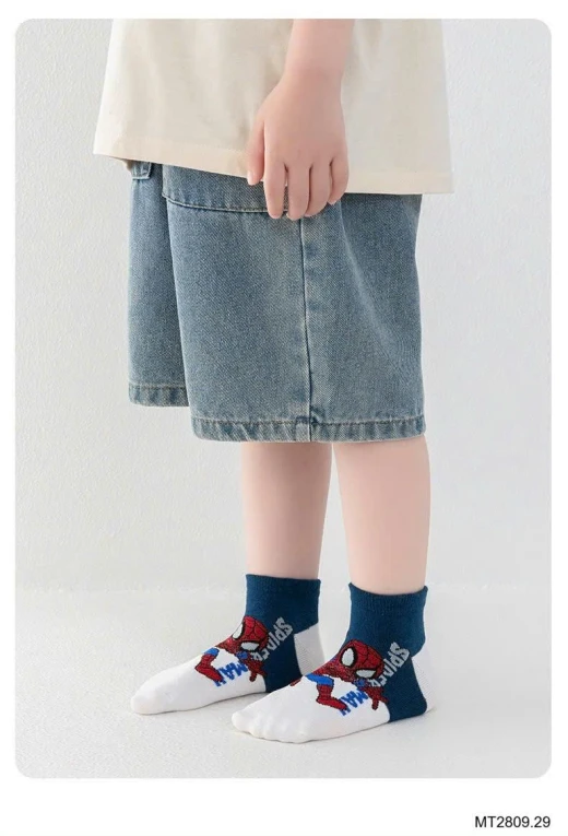 0110hc56 ❤️❤️ SET 5 ĐÔI TẤT SIÊU NHÂN BÉ 85Kk/set 5 đôi ✔️ Hình siêu nhân cực ngầu – bé trai thích mê ✔️ Vải mềm, co giãn tốt, thấm hút mồ hôi – cho bé thoải mái cả ngày. ✔️ Set 5 đôi tiện lợi – thay đổi mỗi ngày, vừa tiết kiệm vừa đáng yêu ✔️2 mẫu đánh số ✔️ Sz S :1-3y M: 3-5y L: 6-8y Xl : 9-12y Giá: 50k/set 5 đôi Chốt 1/10