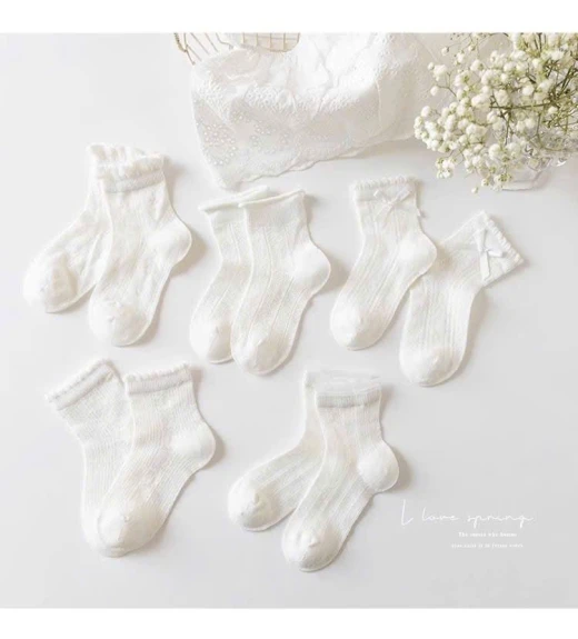 2109hc67 SET 5 ĐÔI TẤT XINH CHO BÉ Mẹ ơi, để bé yêu diện váy xinh thì không thể thiếu đôi tất công chúa đáng yêu này đâu ạ! ✔️ Chất cotton mỏng nhẹ, thoáng mát – bé đi cả ngày cũng không bí chân. ✔️ Thiết kế không đường gân – siêu êm, không lo cấn hay khó chịu. ✔️ Viền ren công chúa trắng tinh, xinh xắn dễ phối cùng váy, đầm, giày búp bê. 2 mẫu đánh số ✅3 size Sz 2-5 tuổi Sz 6-8 tuổi Sz 9-12 tuổi 🌸 giá 50k/set 🐬 chốt 2109
