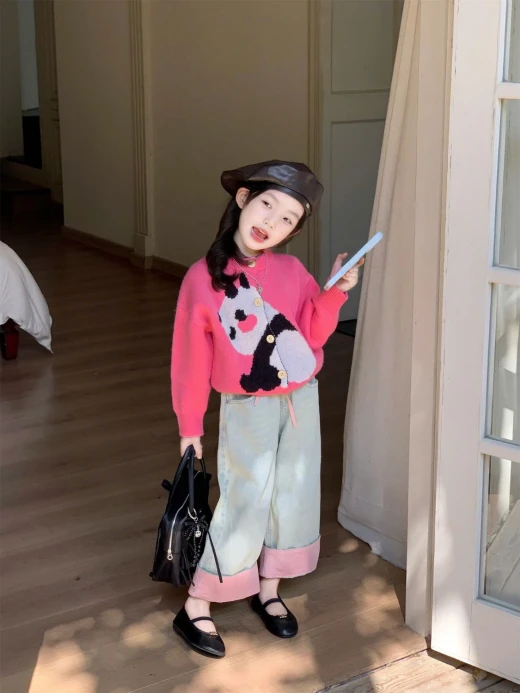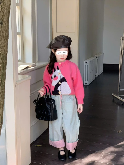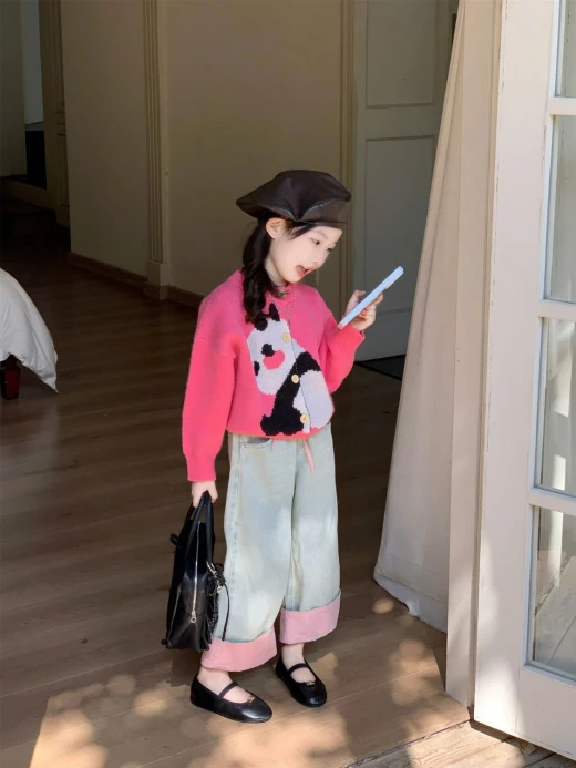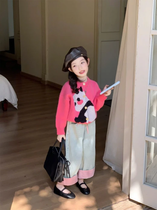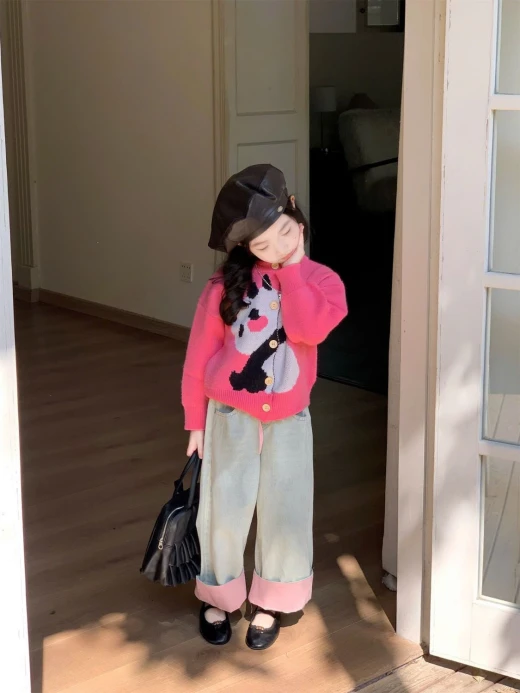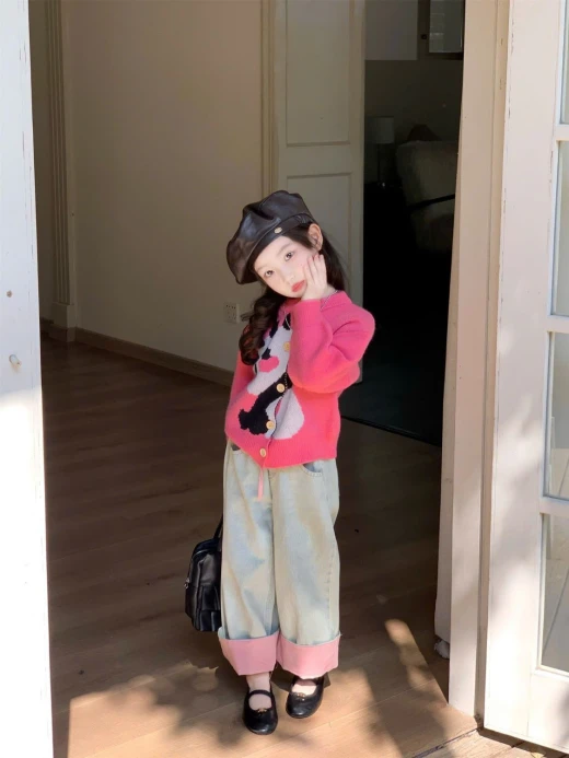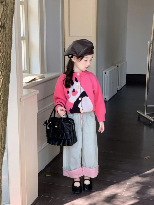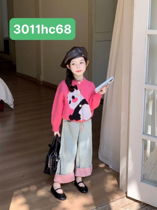 3011hc68 Set áo cardigan len hồng gấu trúc mix jeans suông ✔Size : 90-140 🌸 giá áo: 192k quần: 220k 🐬 chốt 30/11