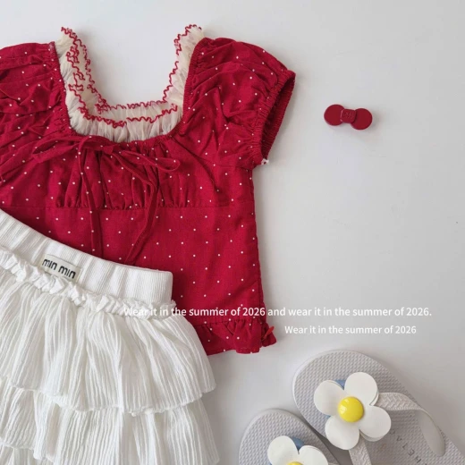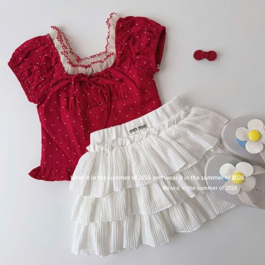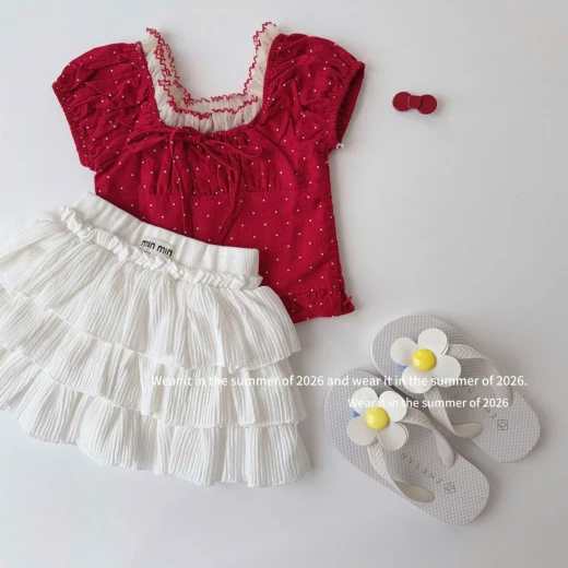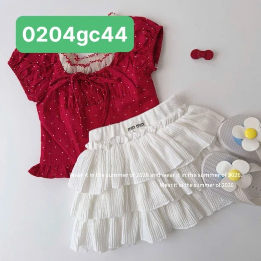 #0204gc44 SÉT ÁO ĐỎ MIX CV TRẮNG T&QKIDS ✔áo size : 90-150 ✔cv size 90-160 🌸 giá áo giá 179k cv giá 170k 🐬 chốt 2/4