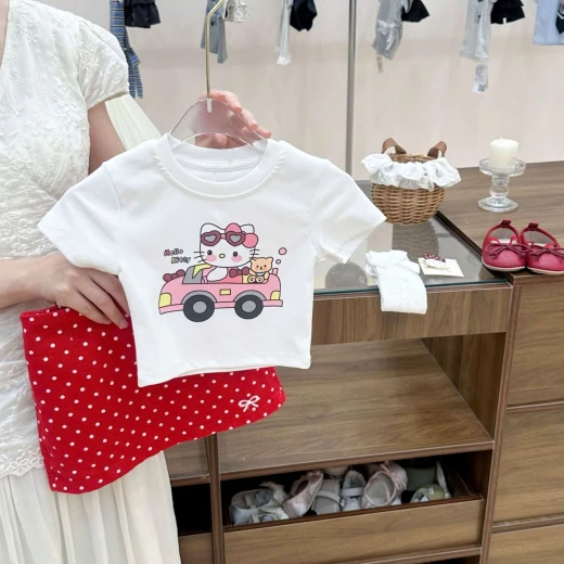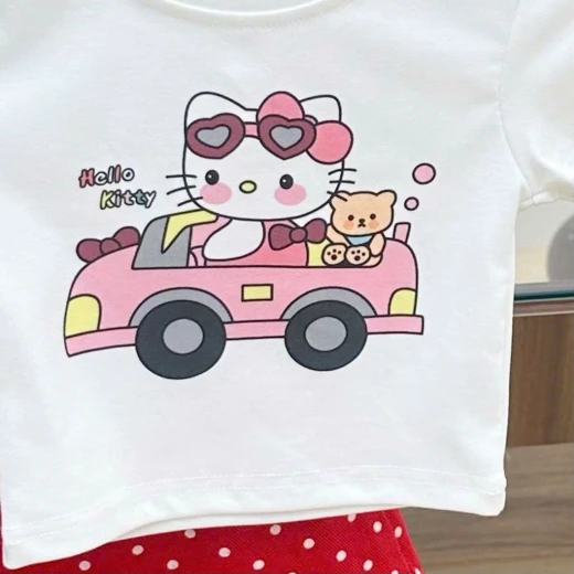 2304gc10 SET ÁO KITTY + CV ĐỎ CHẤM BI Áo thun in hình dễ thương phối chân váy chấm bi đỏ, bé mặc lên vừa nổi bật vừa đáng yêu quá! Set kèm cả tất trắng luôn nha các mom sz 80-140 🌸 giá 166k 🐬 chốt 23/4