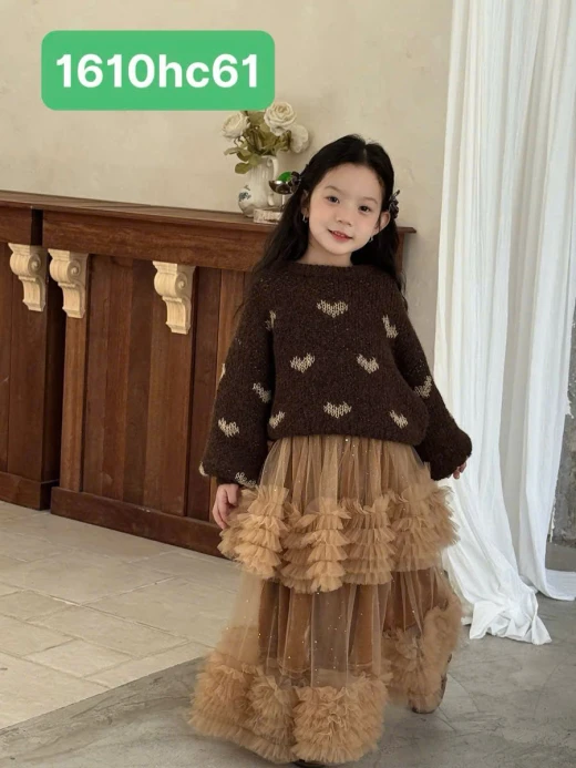 1610hc61 SET ÁO LEN NÂU TIM MIX CHÂN VÁY Lên mẫu #𝐘𝐮𝐤𝐢𝐝𝐬 chuẩn gu slay nâu tây sang xỉu (Mẫu cao 110cm nặng 16kg mang sz 110/120) 🌈Bảng size tham khảo: - Size 90 (𝟣𝟣-𝟣𝟥𝗄𝗀) (85-95cm) - Size 100 (𝟣𝟦-𝟣𝟨𝗄𝗀) (95-105cm) - Size 110 (𝟣𝟧-18kg) (105-115cm) - Size 120 (18-𝟤𝟤𝗄𝗀) (115-125cm) - Size 130 (𝟤𝟤-𝟤𝟧𝗄𝗀) (125-135cm) - Size 140 (𝟤𝟧-30kg) (135-140cm) - Size 150 (30-35kg) (140-150cm) gía: áo len 210, váy voan 285k, váy len 175k Chốt 1610