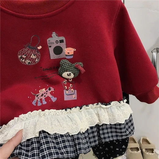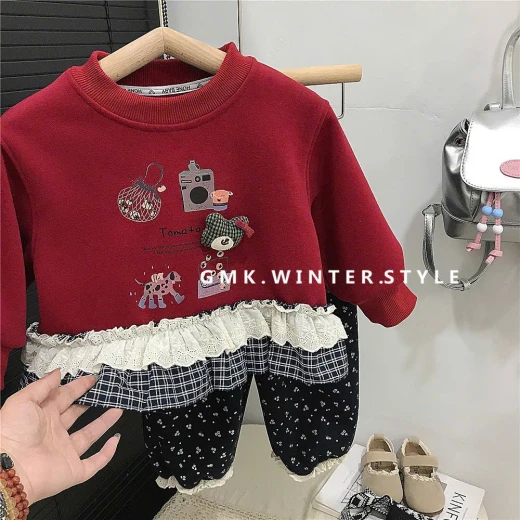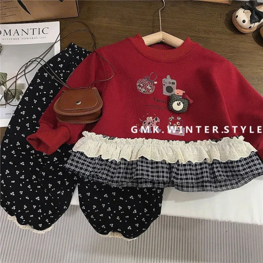 0311hc69 SET ÁO NỈ PHỐI REN MIX QUẦN HOA NHÍ BG bé mặc ở nhà, đi học hay đi chơi đều xinh ✅sz 90-140 90: 11-13k36 100: 13-15kg 110: 15-17kg 120: 17-20kg 130: 20-25kg 140: 25-30kg 🌸 giá áo: 186k quần: 179k cả set: 360k 🐬 chốt 0311