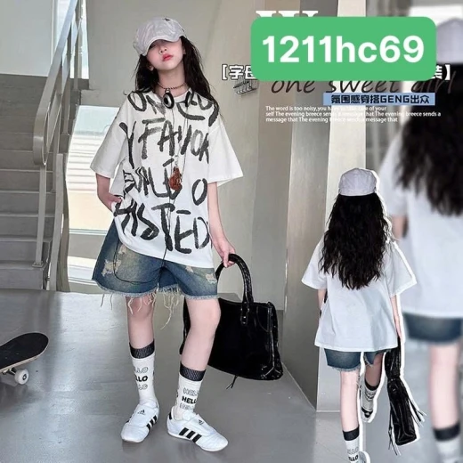 1211hc69 SET ÁO PHÔNG CHỮ MIX JEAN RÁCH SZ ĐẠI Áo #xxxk Quần #xxxk 👉 Sz: 120-170 GGiá: áo 160k , quần 148k Chốt 1211