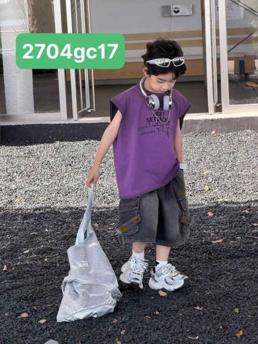 2704gc17 SET ÁO TANKTOP TÍM MIX SHORT JEAN TARUS Áo xxxxk Quần xxxxk Kiểu dáng thể thao năng động ✅ Sz: 90- 160 Bảng sz tham khảo 90: 10-13kg 100: 12-15kg 110: 15-17kg 120: 18-20kg 130: 21-24kg 140: 24-28kg 150: 28-32kg 160: 32-36kg +25k ☘️Giá: Áo 139k Quần 225k ✅ Hàng order chốt 27/4